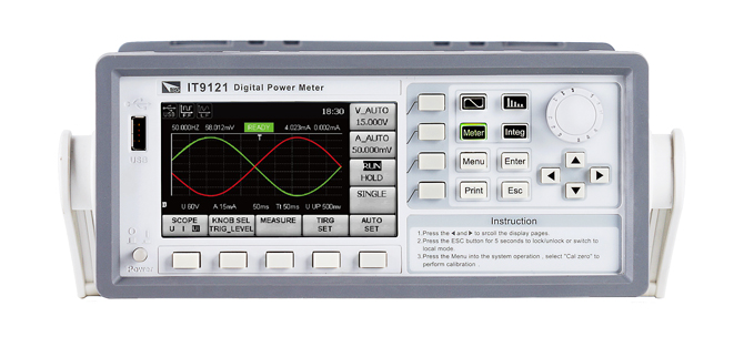 IT9100 系列功率分析仪提供1000Vrms和50Arms的最大输入,以及100kHZ的测量带宽,可以方便地进行电压、电流、功率、频率、谐波等参数的量测。标配有USB、RS232和以太网通信接口,您可以通过这些接口实现对IT9100功率分析仪的远程控制,同时您还可以利用USB外围设备接口,直接将量测参数保存到外部储存介质中。IT9100功率分析仪具有0.1%的电压、电流精度,同时还具有丰富的波形显示功能、积分功能。广泛应用于电机,家用电器,UPS等测试领域。